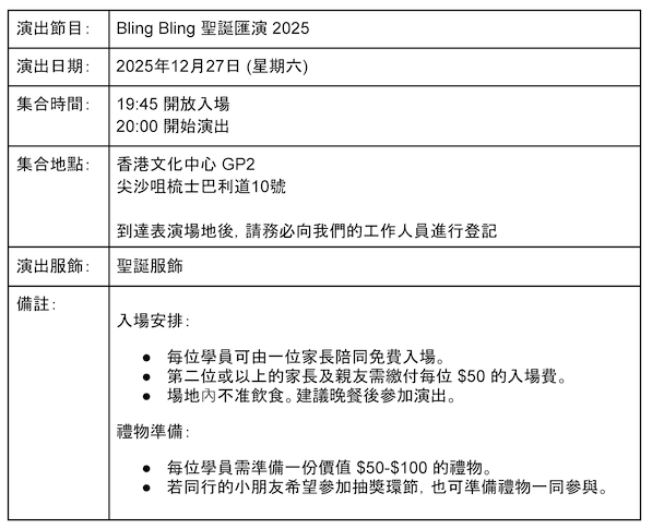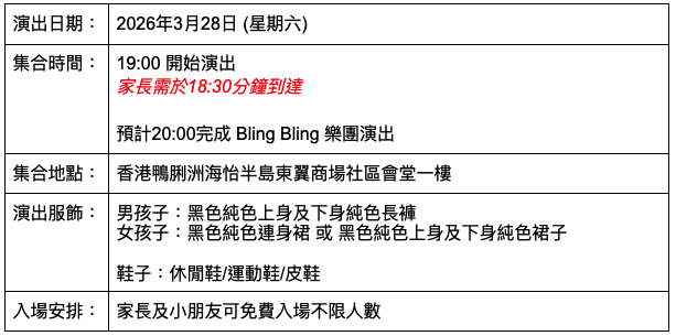 透過演出,小朋友們不僅能夠聆聽到美妙的音樂,還有機會參與各種互動活動,這些活動促進他們的社交能力和音樂才能。Bling Bling 樂團的每一次演出都是一次難忘的音樂之旅,讓小朋友們在歡樂中結交新朋友,探索音樂的無限可能!